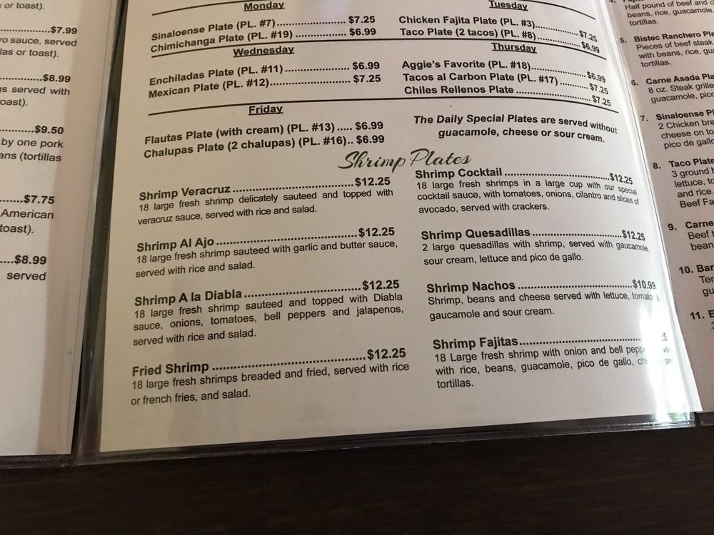 Shrimp, beans and cheese served with lettuce, tomatoes, gaucamole and sour cream.