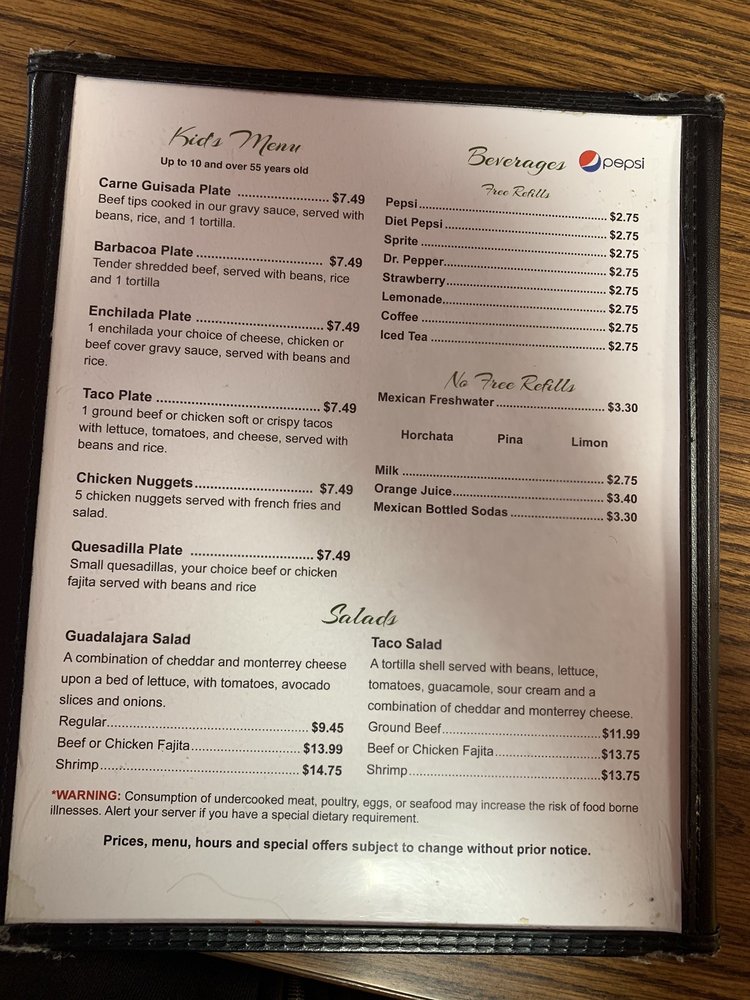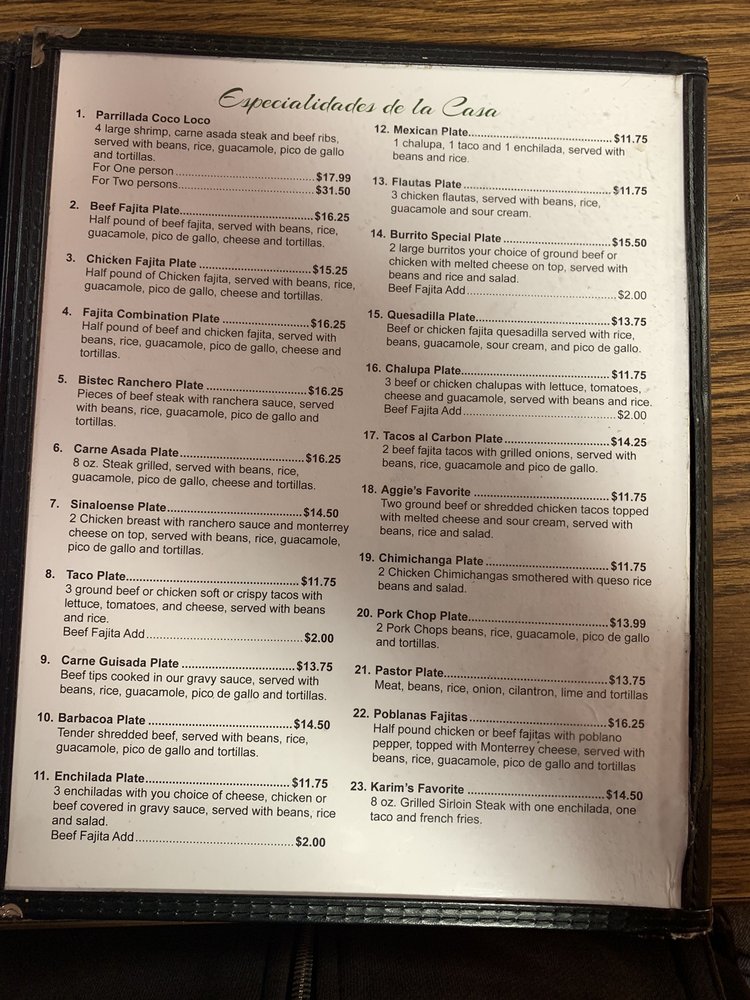 Half pound of beef fajita, served with beans, rice, guacamole, pico de gallo, cheese and tortillas